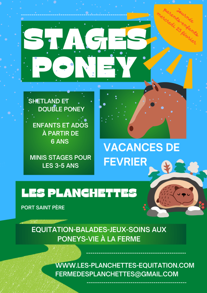 Mercredi 18 février: mini stage baby poney (à 10h ou 16h00) Stage galop 1-2-3 double poney