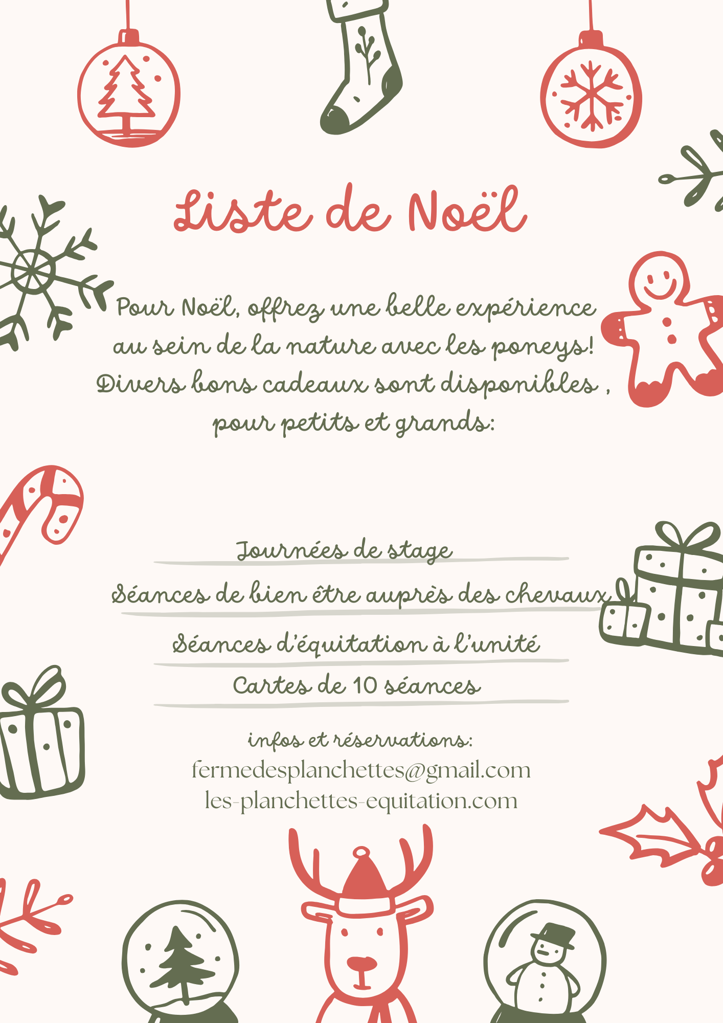 Voici le programme pour les vacances de Noël: